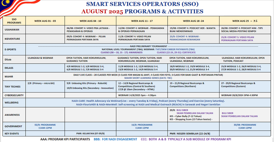 Jadual aktiviti Ogos 2025