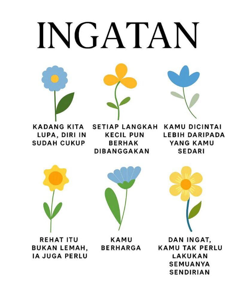 Setiap detik tetap satu kemenangan. Kamu dicintai, berhak berehat, dan layak bahagia. Ingat, dunia ini masih indah kerana adanya kamu.